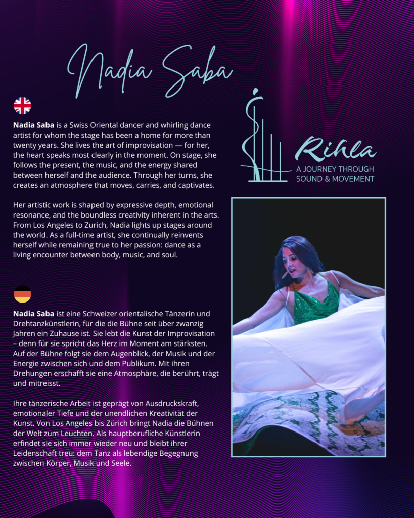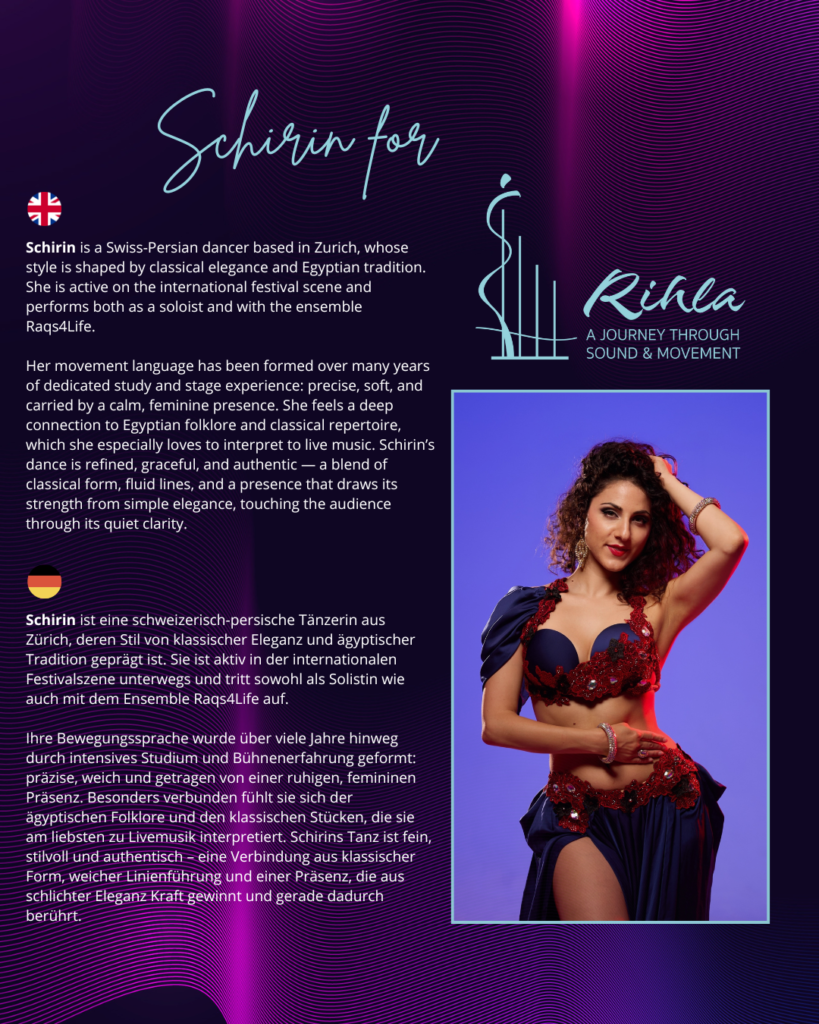 Rihla – ein Wort, das von einer sinnstiftenden Reise erzählt – bildet den roten Faden dieses Konzerts. Es spiegelt nicht nur eine musikalische Reise durch Regionen und Stile wider, sondern auch den persönlichen Weg, den ich über 25 Jahre im Bereich des orientalischen Tanzes gegangen bin: als Lernende, Forscherin, Tänzerin, Lehrerin und Suchende.